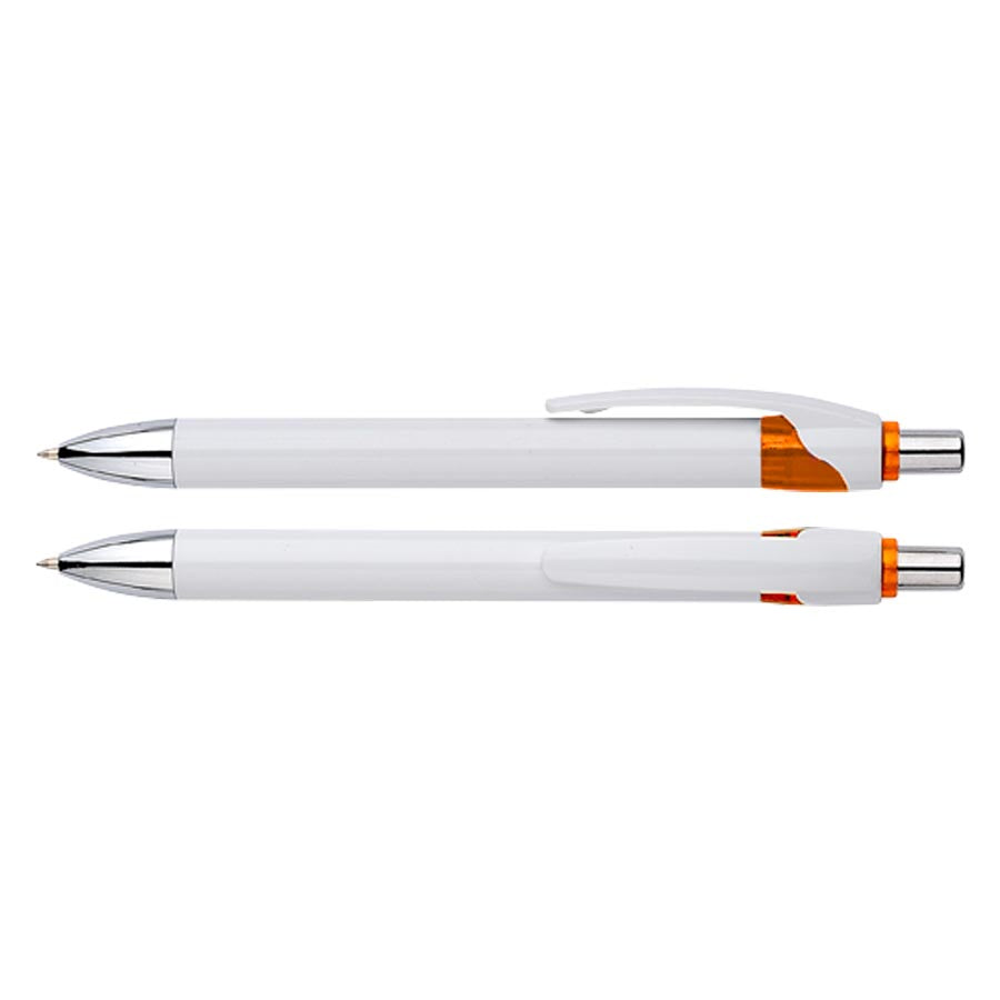 Este bolígrafo combina un cuerpo blanco limpio y profesional con toques de color vibrante que lo hacen destacar. Perfecto para promociones, ferias, eventos corporativos o el día a día en la oficina. Una opción económica, funcional y 100% personalizable.